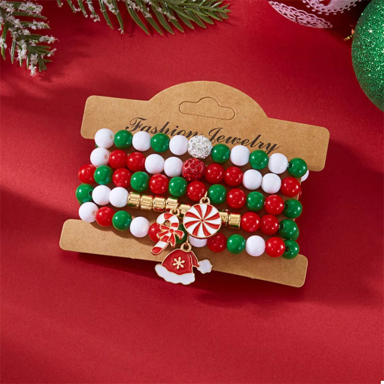 5-Piece Christmas Holiday Beaded Bracelet