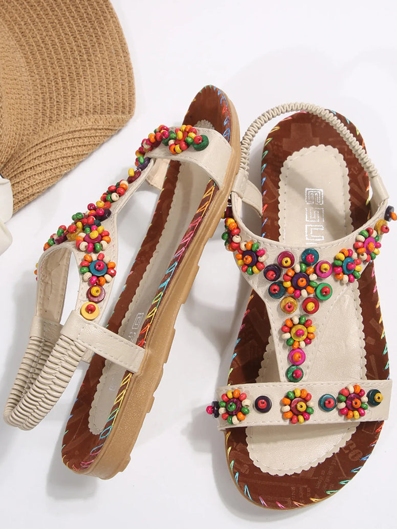 Beaded T-Strap Flat Sandals