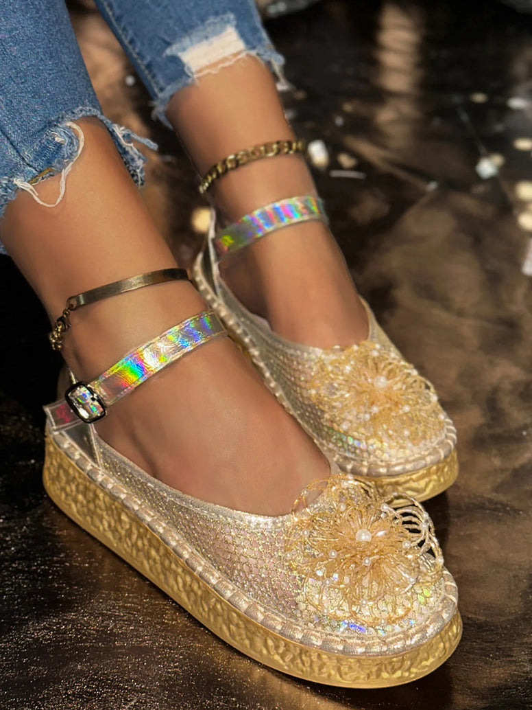 Flower Round Toe Platform Slip-Ons