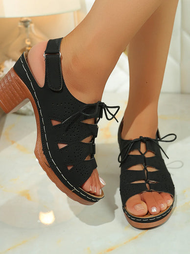 Lace-Up Block Heel Sandals