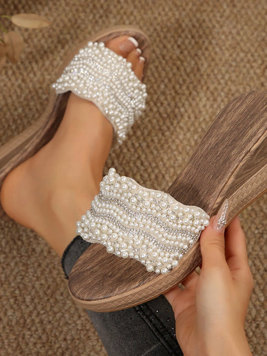 Pearl Embellished Wedge Sandals