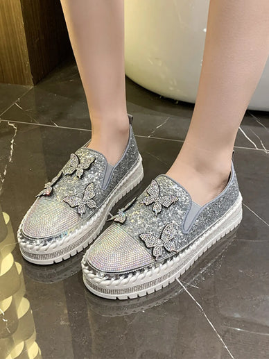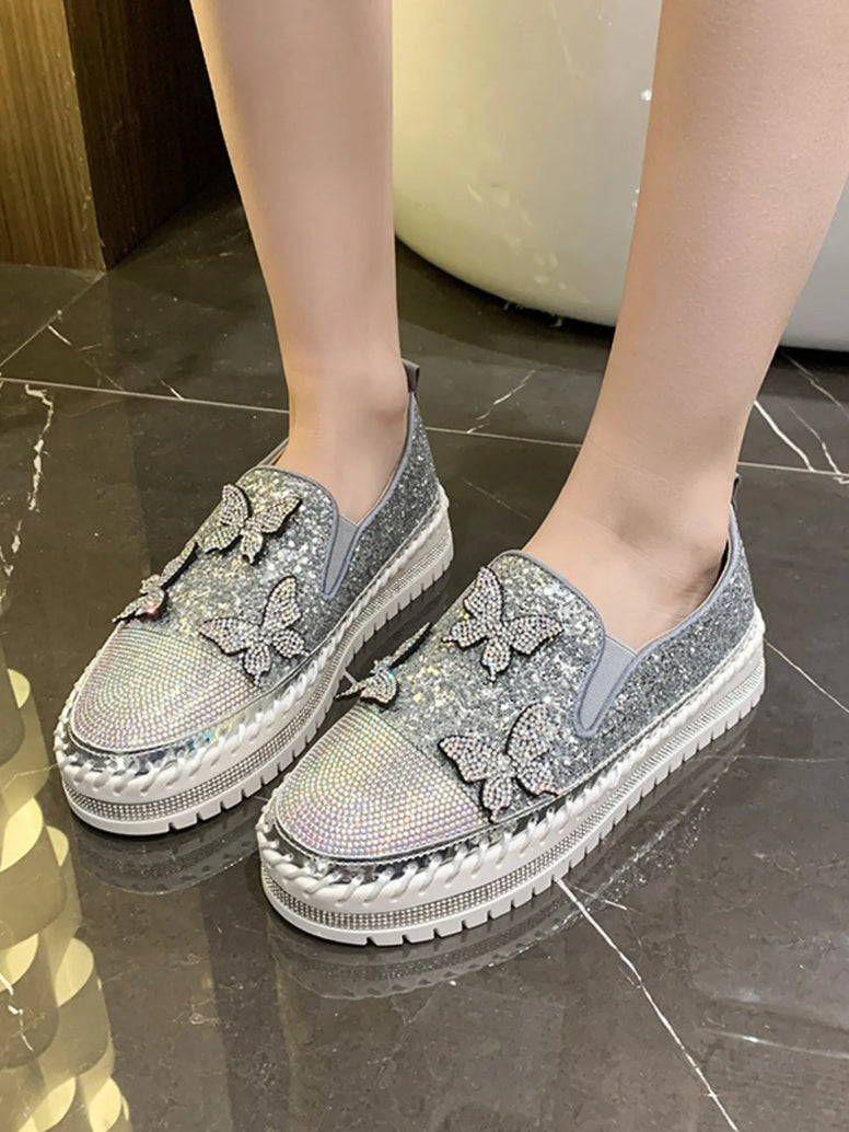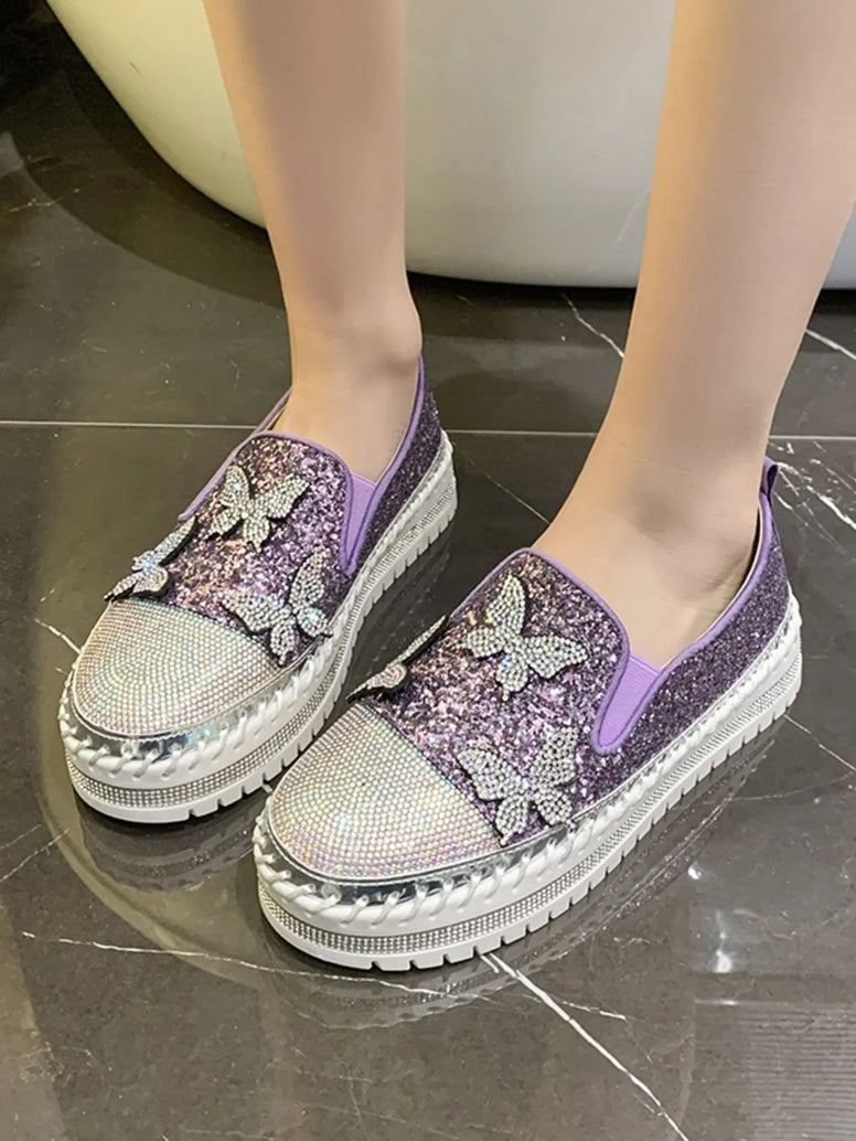 Rhinestone Embellished Platform Slip-Ons