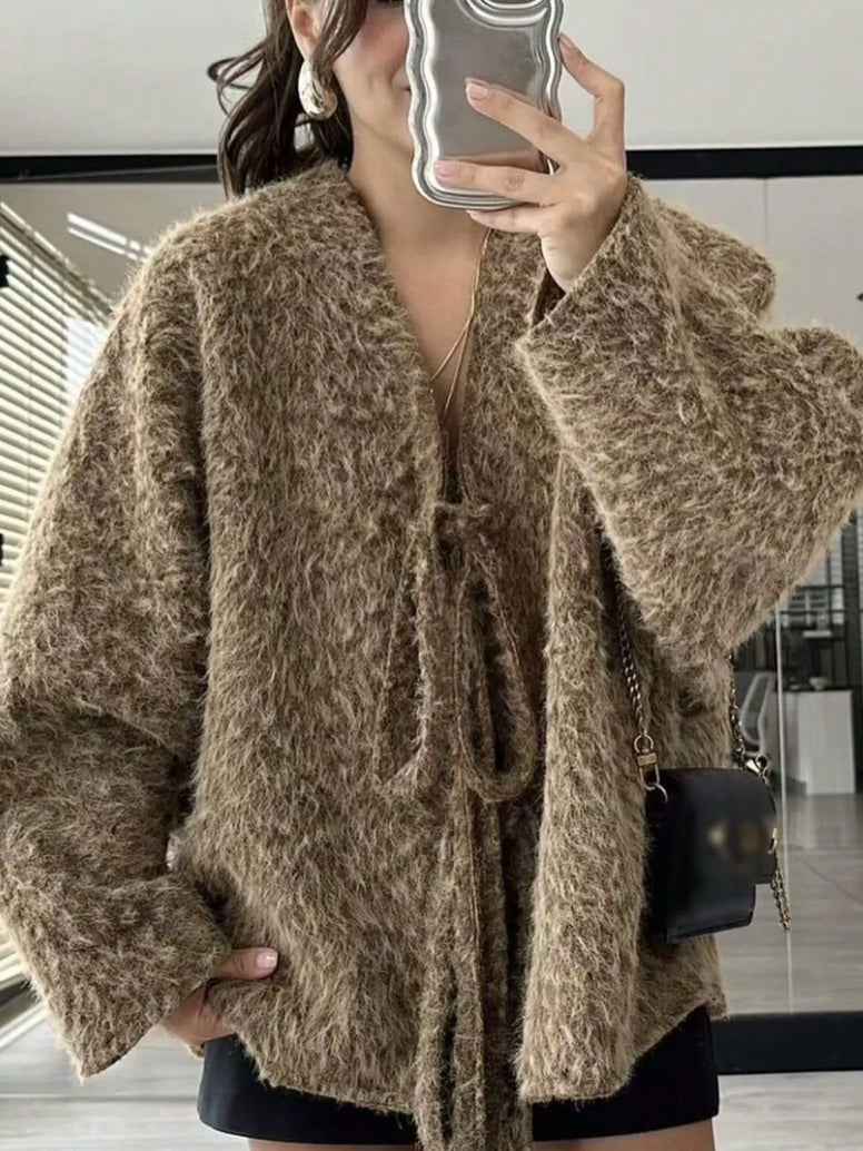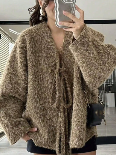Textured Knit Tie-Front Outerwear